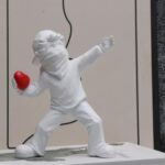 Heart Thrower Boy Decorative Statue. White Resin Sculpture. Modern Art Design. 7 x 5.5 inches